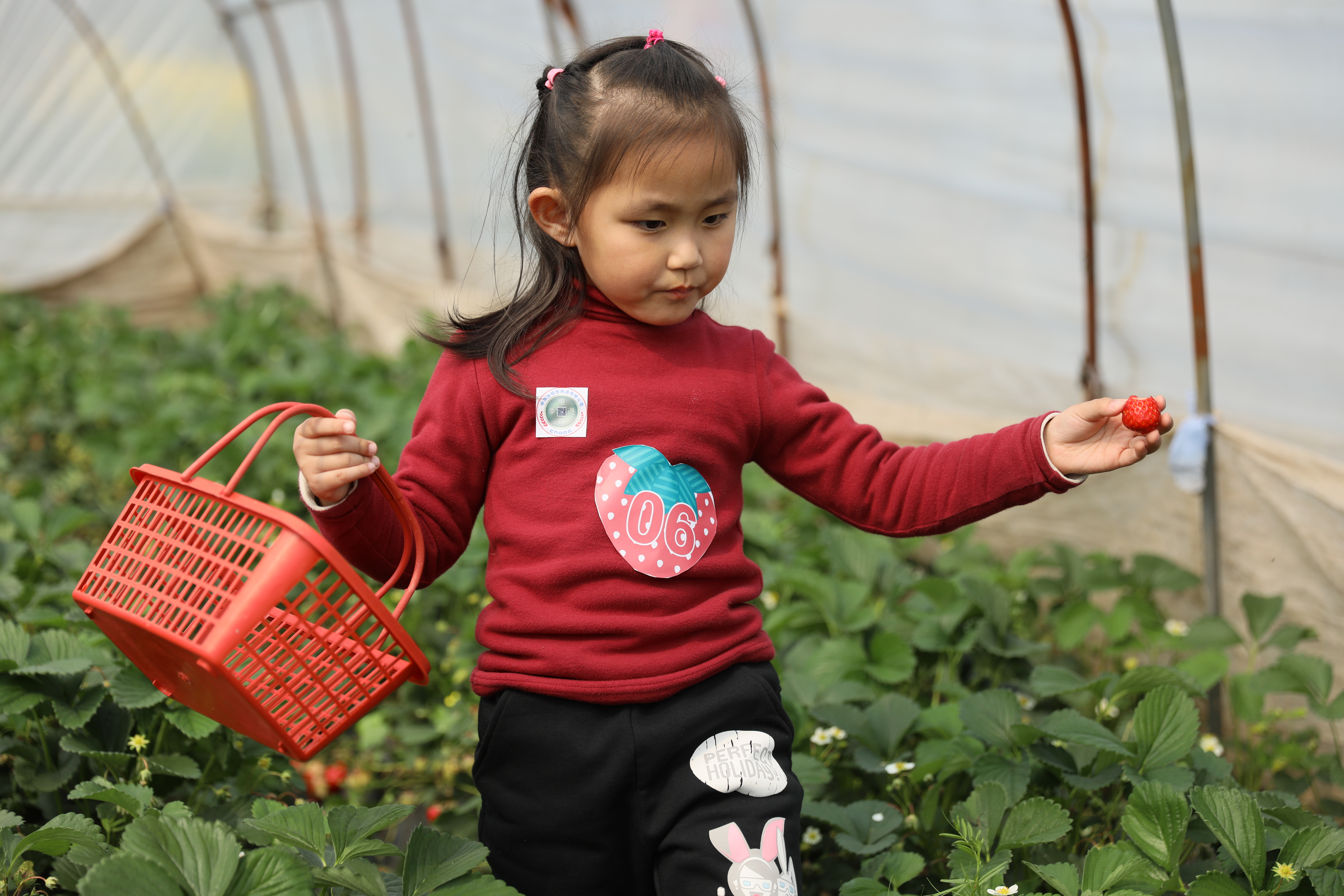 三月的微風拂面,春天的氣息悄然來臨。草莓似乎是最能拉近人們和春天距離的一種水果。鮮紅欲滴的嬌嫩果實,伸著懶腰的綠葉,滿口略帶酒味的醇香,無法不讓你感覺到春天臨近的妙曼腳步。 提著竹筐, 穿梭在一行行“草莓方陣”中,一顆顆鮮紅誘人的草莓點綴在大片碧翠的綠田上,彎腰摘下一顆放入嘴里,味蕾被濃香的漿液喂飽,滿口生香。