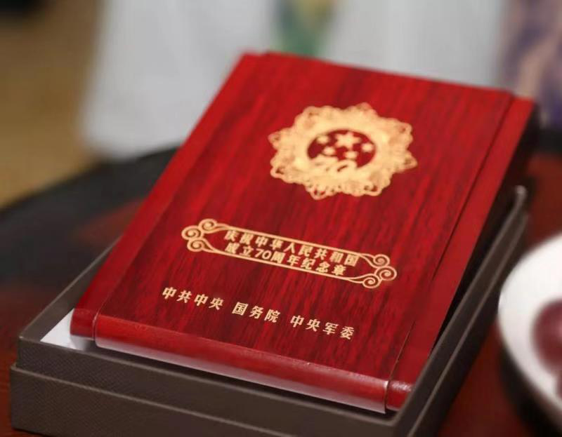 為慶祝新中國成立70周年,南通國融資產(chǎn)運(yùn)營有限公司根據(jù)產(chǎn)控集團(tuán)的統(tǒng)一安排,從9月19日開始,由工會主席孫美峰帶隊走訪慰問新中國成立之前參加革命工作、目前仍然健在的國融資產(chǎn)離休老干部。 本次走訪慰問活動恰逢祖國70周年喜慶,中共中央、國務(wù)院、中央軍委為老干部們制作了“慶祝中華人民共和國成立70周年”特制紀(jì)念章。紀(jì)念章使用銅胎鍍金材質(zhì),通徑為50毫米,主要元素為五星、“70”飄帶、團(tuán)錦結(jié)、如意祥云和光芒,主色調(diào)為紅色和金色?!?0”飄帶象征中華人民共和國70年奮斗歷程。章體外環(huán)以如意祥云、光芒構(gòu)成,象征人民對美好生活的向往,同時表達(dá)隆重慶祝中華人民共和國生日,禮贊國家富強(qiáng)、民族振興、人民幸福的輝煌成就,以及在70年輝煌奮斗成就的基礎(chǔ)上不忘初心、繼續(xù)前進(jìn)的堅定決心。每枚紀(jì)念章內(nèi)側(cè)均打印編號,每一個編號對應(yīng)每一位離休老干部的名字。
