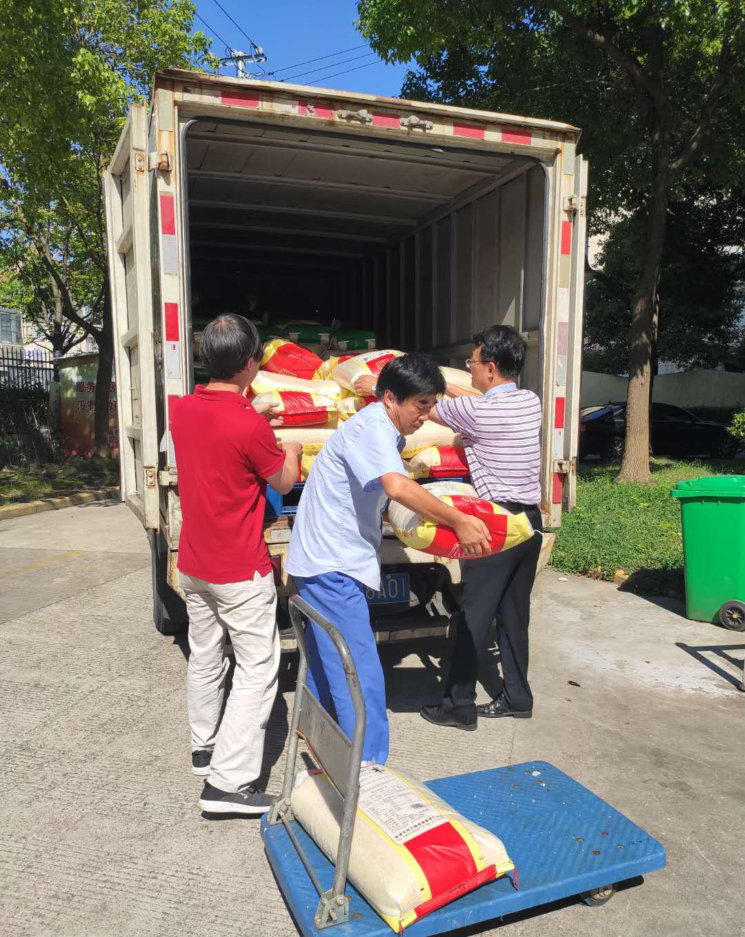 此次慰問活動,我公司共為陽光養(yǎng)老院送去七百五十公斤的大米,公司領(lǐng)導(dǎo)及志愿者頂著烈日主動幫助工人將大米搬入后勤部倉庫。