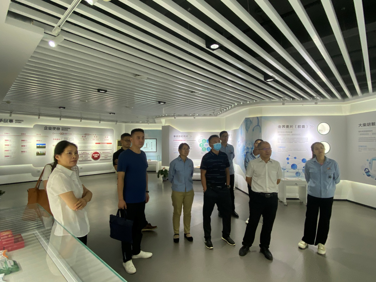 邵平一行首先參觀了王氏保赤丸生產(chǎn)車間,聽取了王氏保赤丸的生產(chǎn)歷史以及國家非遺技藝泛丸工序的制作過程,大家紛紛感嘆中華中醫(yī)藥制作技藝的精妙。隨后,一行人參觀了多功能展廳,精華制藥相關(guān)人員介紹了公司的基本情況及主打產(chǎn)品功能。